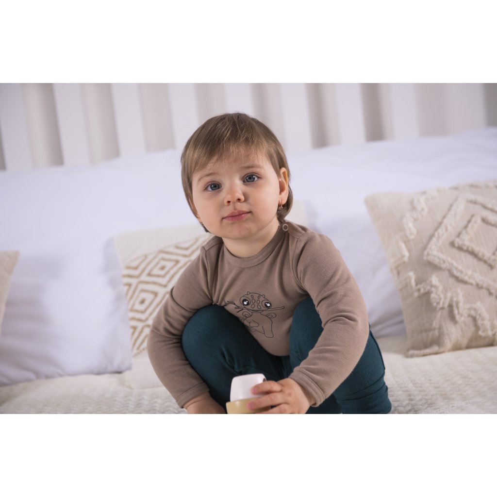Body ze silného úpletu s dlouhým rukávem skvěle využijete především v chladných měsících. Je vhodné jako spodní vrstva při oblékání na ven, ale v kombinaci s tepláky nebo dupačkami je možné jej nosit i doma. Body je vyrobeno z pružného příjemného materiálu, který se přizpůsobí více velikostem. Maminky jistě ocení zapínání na druky u krku a v rozkroku, díky kterému se body velmi lehce a rychle obléká. Při výrobě tohoto body byl použitý materiál Outlast® ve smykové variantě, která je z líce hladká a z rubu má smyčky. Materiál Outlast® dokáže během nošení regulovat tělesnou teplotu, odvádět přebytečné teplo a zabránit propocení. Ve chvíli, kdy tělesná teplota klesne, materiál Outlast® nahromaděné teplo uvolní a začne tělo zahřívat. Oblečení z materiálu Outlast® je díky svým termoregulačním vlastnostem velmi oblíbené, neboť zajišťuje teplotní komfort po celou dobu nošení. Body s dlouhým rukávem je vhodné na podzimní, zimní a jarní měsíce.