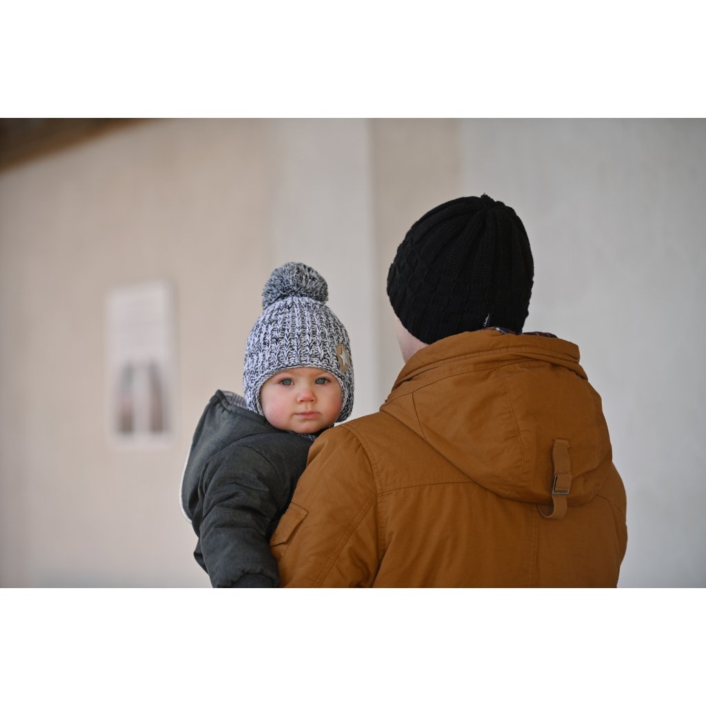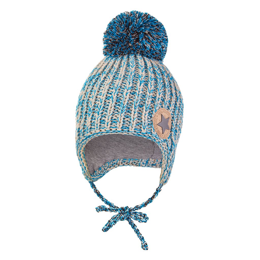 - Pletená čepice podšitá, s bambulí a zavazováním