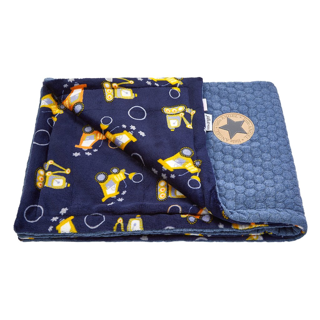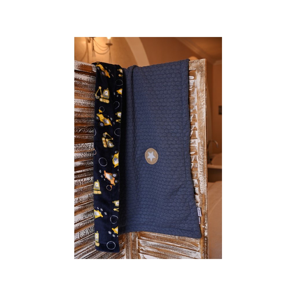 motiv obrázků stavebních strojů, druhou stranu tvoří měkké a velmi příjemné
