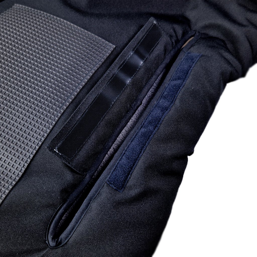 - Fusak má na zadní části dva prostřihy uzavřené suchým zipem