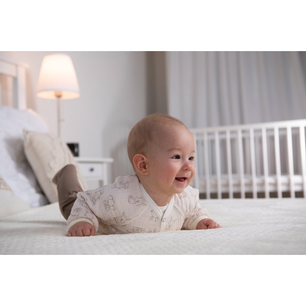 Podšitý kabátek pro nejmenší v sobě kombinuje 2 skvělé materiály: 100% bavlnu, díky které vám můžeme nabídnout nejrůznější designy a materiál Outlast®, který se stará o teplotní komfort vašeho miminka. Kabátek je pružný a velmi příjemný na dotek. Zapíná se na druky.