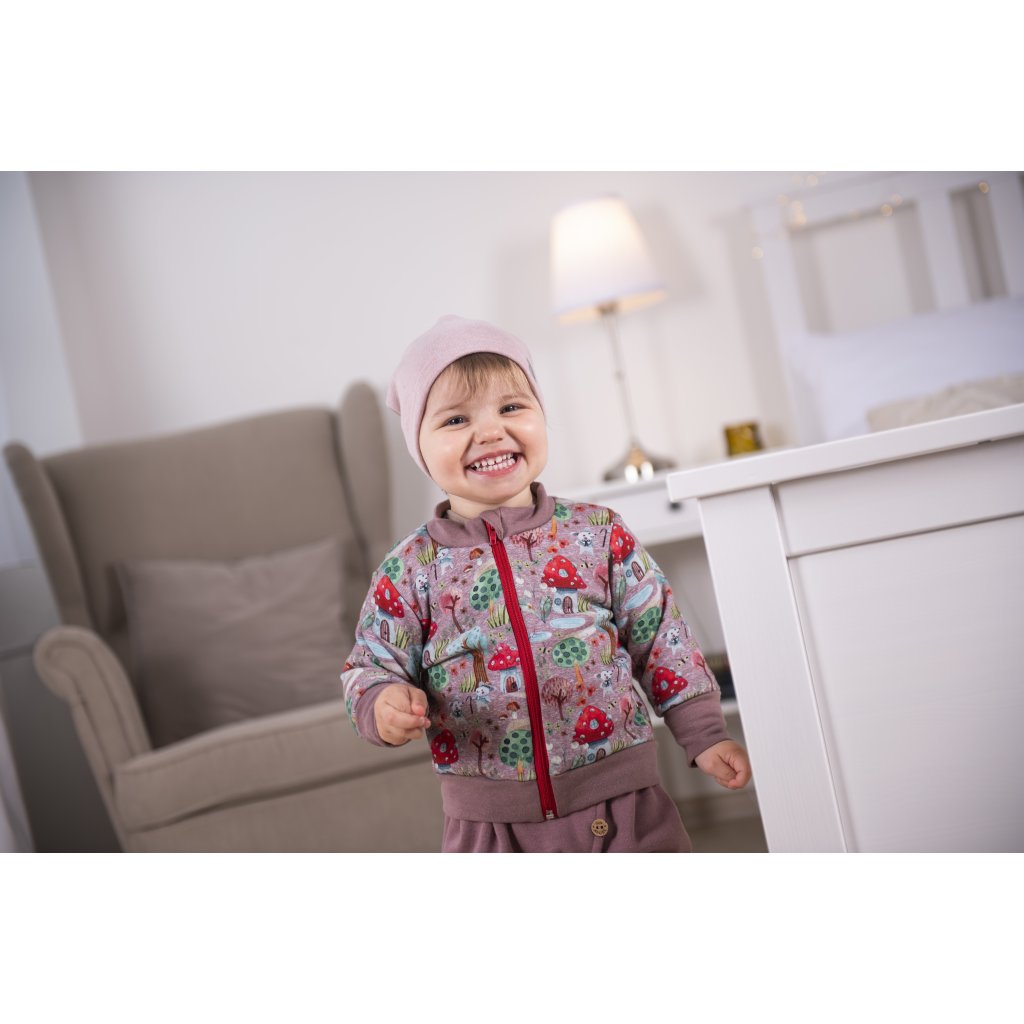 Mikina hřejivá rozepínací - muchomůrky starorůžová