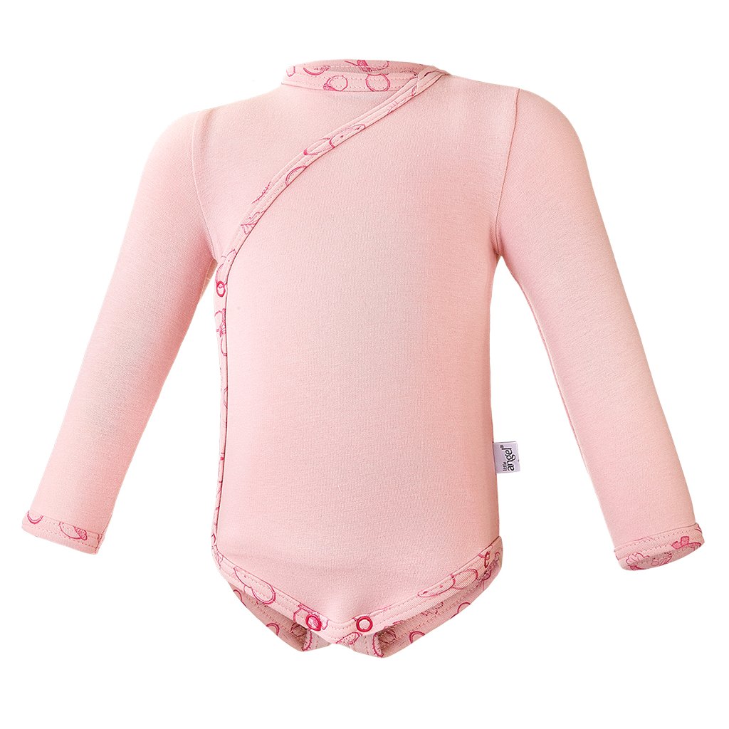 Zavinovací body patří mezi jedno z nejoblíbenějších. Právě proto je součástí sady pro kojence. Body má praktické umístění patentků, na ramínku, dole i na boku. Díky tomu lze body lehce rozepnout a oblékání je o to snadnější. Již nemusíte svému miminku oblékat body přes hlavičku. Set je doplněn o polodupačky, které mají široký pružný lem kolem bříška. Zajistí komfort a pohodlí. Čepička doplní krásnou sadu a podtrhne tak celistvost.