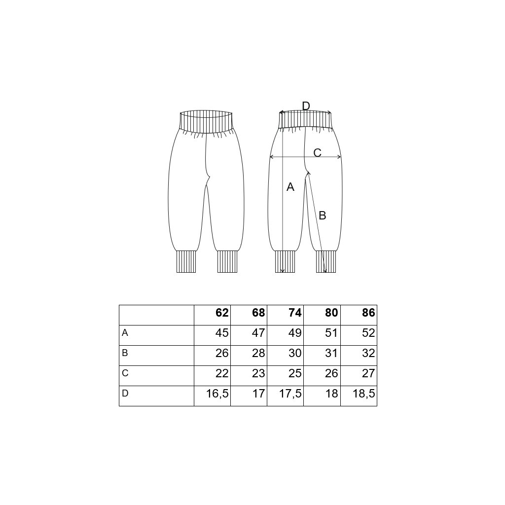 - Náplet lze ohrnout a přizpůsobit tak velikost tepláků výšce dítěte