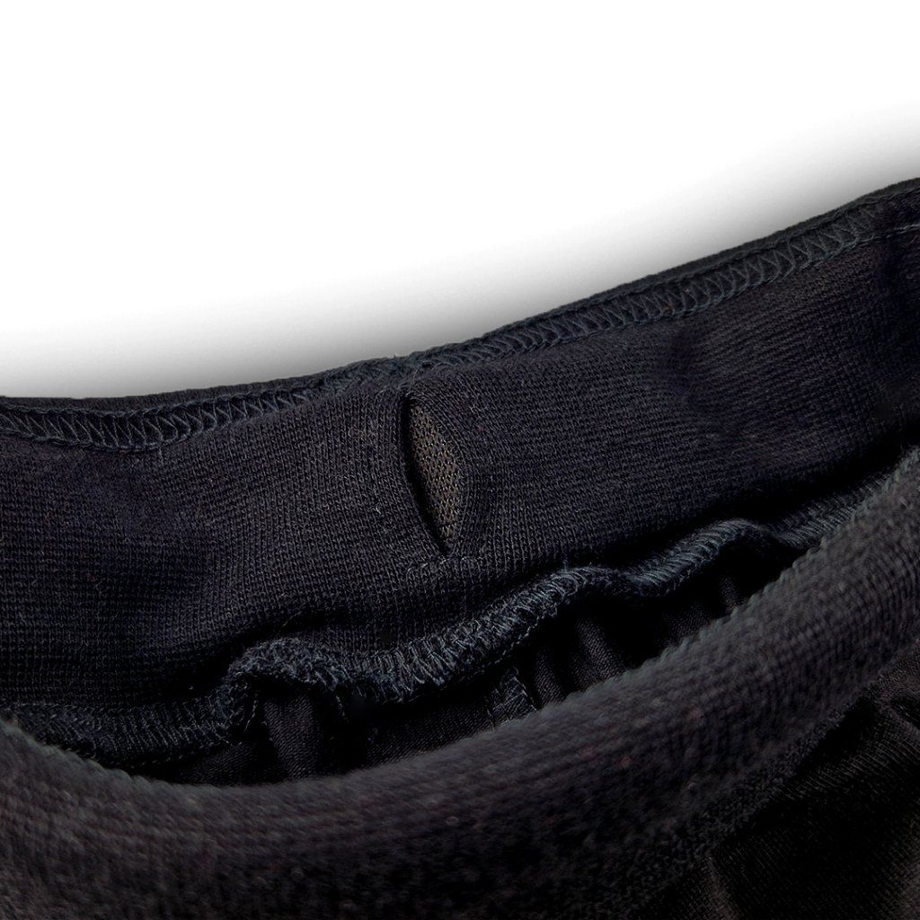 Tepláky mají nažehlené etikety, které netlačí a neškrábou, a