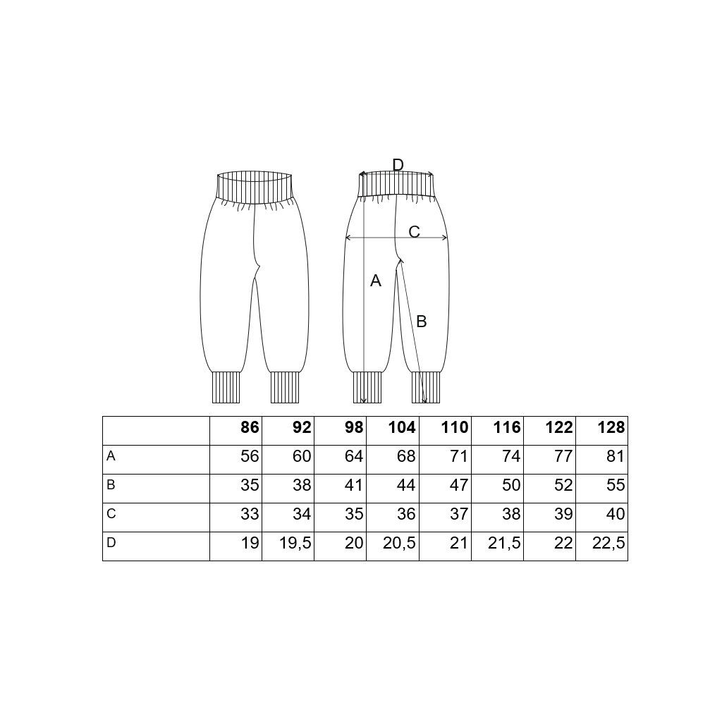 - Široký lem v pase i na nohavicích - drží, dá se ohrnout
