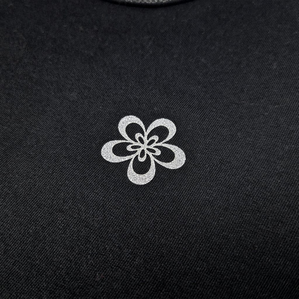 - Dlouhé tričko je doplněno o designové stříbrné prošití a potisk květiny