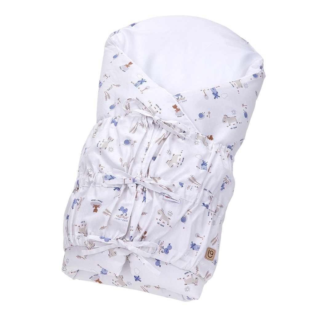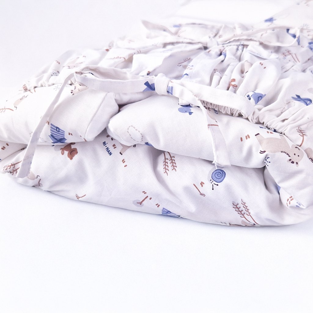 stranu tvoří hebký bavlněný satén. Zavinovačka se zavazuje pomocí stužek s