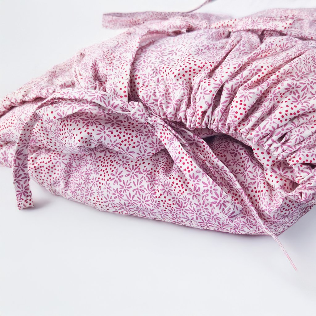 stranu tvoří hebký bavlněný satén. Zavinovačka se zavazuje pomocí stužek s